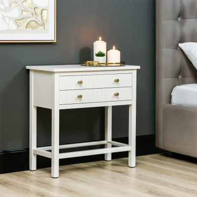 Add a touch of timeless sophistication to your bedroom with the Lindon Frosty White 2 Drawer Bedside Cabinet. Featuring a sleek frosty white finish and clean, contemporary lines, this versatile piece blends effortlessly with both modern and classic interiors.