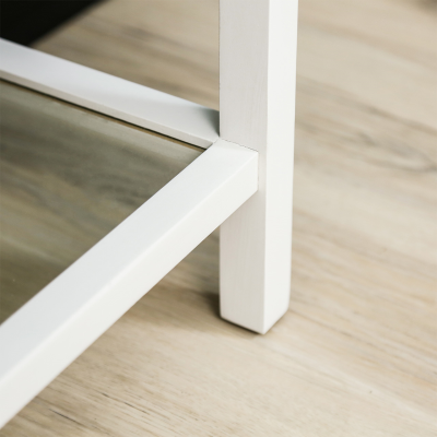 The cabinet is designed with two spacious drawers, perfect for keeping your night-time essentials neatly tucked away. A clear glass shelf adds a refined touch, doubling as a stylish display space for décor, books, or personal items. The gold handle accents provide a luxurious contrast, elevating the overall design with a hint of glamour.