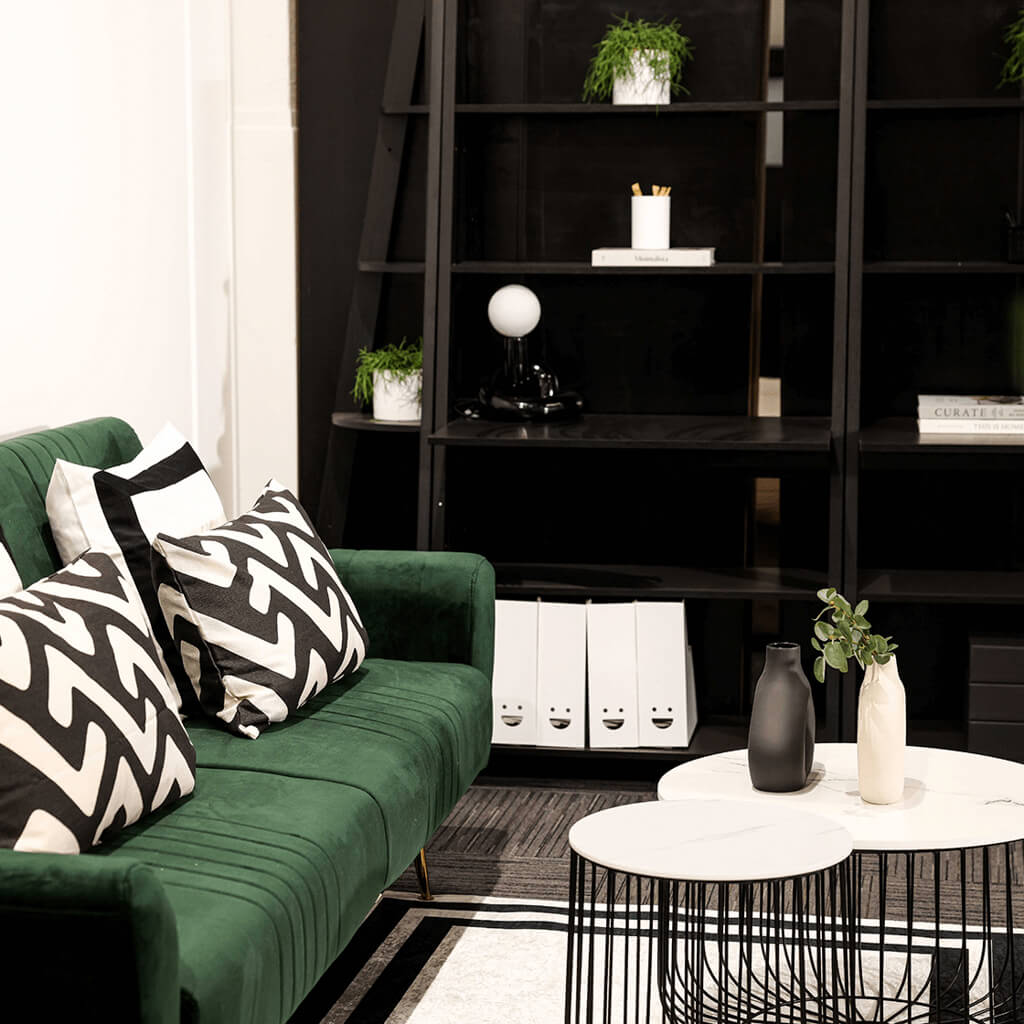 The Tiva Black Corner Ladder Shelving combines modern minimalist design with functional storage. Featuring four spacious shelves and a sleek matte black finish, this corner ladder shelf adds style and practicality to any space. Ideal for displaying décor, books, or plants, it’s a versatile addition to your home that blends effortlessly with any interior theme.